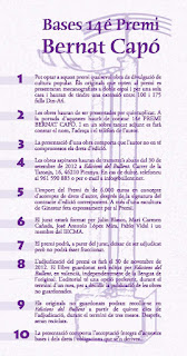 Vos deixem les bases de la convocatòria 14 dels premis Bernat Capó, teniu fins el 30 de setembre de 2012per presentar els treballs. No dubteu a fer-ho si teniu un bon tema i ganes de fer un projecte amb qualitat, el premi són 6.000€, no està gens malament!