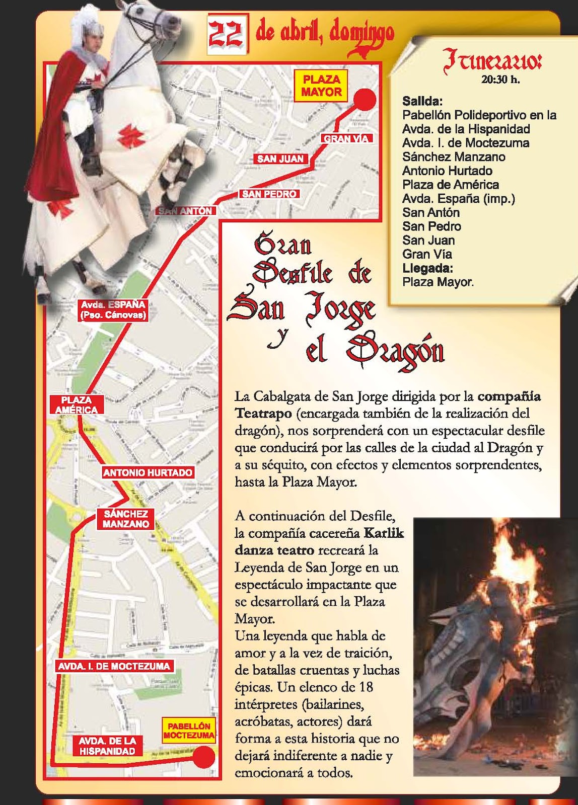 Càceres commemora el 23 d’abril la conquesta cristiana de la ciutat als musulmans, és el seu dia gran i el dia del seu patró Sant Jordi. La curiositat és que la ciutat ho celebra amb una desfilada de moros i cristians i amb la cremà del drac, una barreja que com ens va explicar un extremeny és “las fiestas de moros y cristianos de Alcoi y las fallas de Valencia, todo junto”