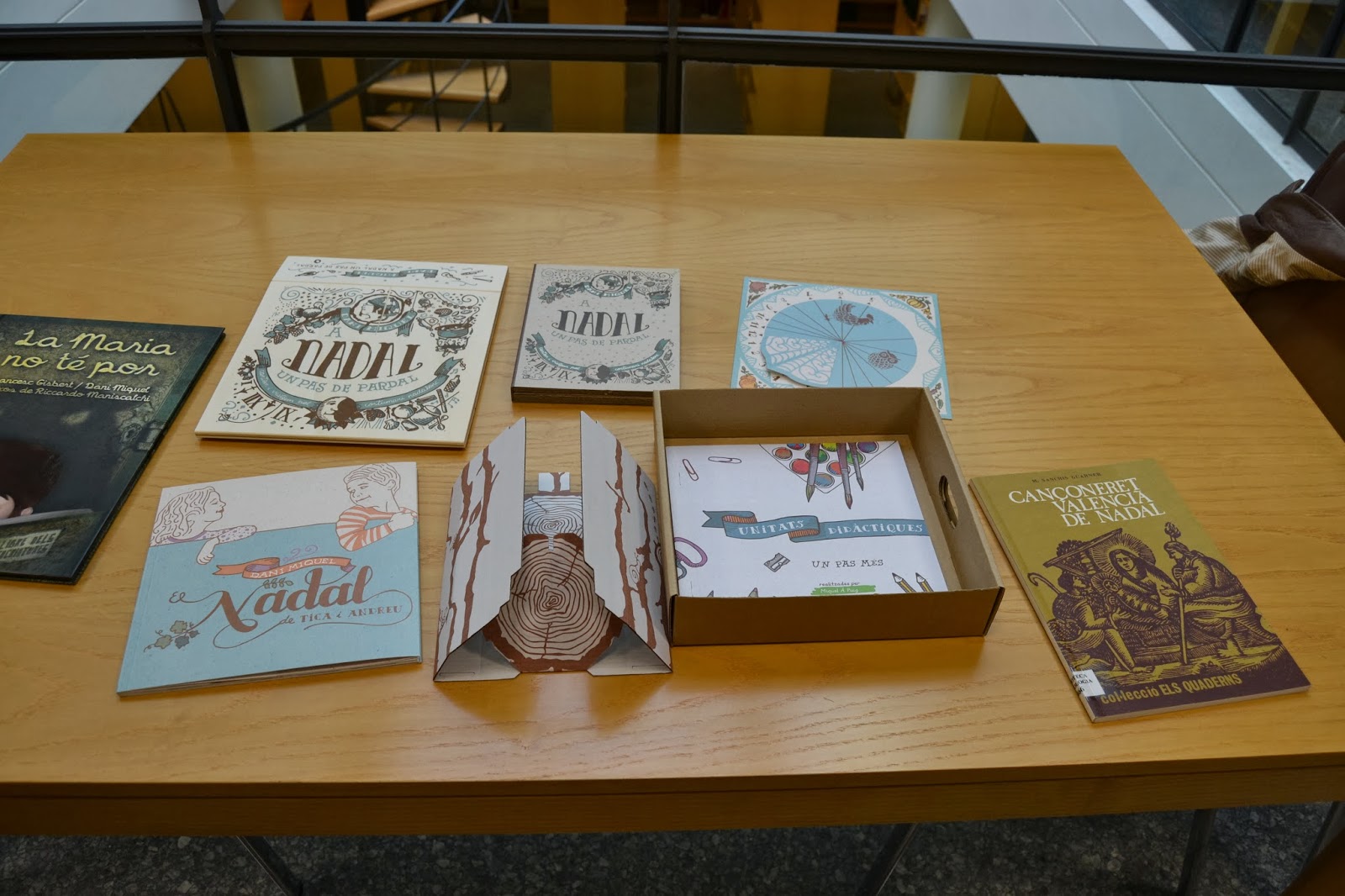 Per correu electrònic li vam proposar que ens mostrara els títols de les nadales per poder buscar-les en els llibres que tenim a la Biblioteca. Però després de sentir el disc, llegir el conte, vore el “capçal”, el rellotge solar, la guia didàctica… hem comprovat que el seu treball no és només de recopilació de nadales sinó de tota la tradició nadalenca valenciana. No ens dóna temps a parlar de tot però al llarg del mes de desembre intentarem publicar informació sobre els llibres que tenim amb les Nadales del disc, d’altres amb receptes de dolços, buscarem informació als nostres llibres sobre “el capçal” (que no coneixíem), parlarem del Betlem de Tirisiti, dels enfarinats d’ibi, de l’home dels nassos… en tot cas, sempre farem referència a tota la informació que podeu trobar al disc de Dani Miquel.
