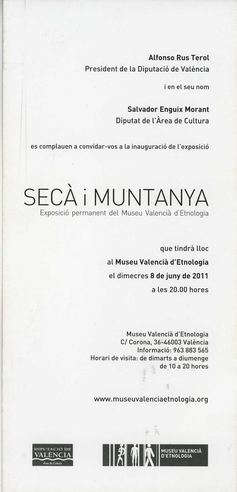 Hui, 8 de juny de 2011, s’inaugura l’exposició “Secà i Muntanya: exposició permanent del Museu Valencià d’Etnologia”.