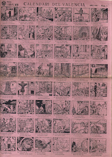 Però anem a deixar-vos també un auca de la Biblioteca de Gayano, l’original de la qual està datat l’any 1939 i està inclosa en la primera sèrie. S’intitula “Calendari del Valencià” i recull el cicle anual festiu.
